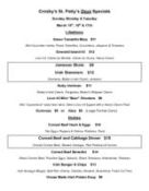 Brunch, Lunch & Dinner Beer & Wine Specialty Cocktails St. Patty’s Days SpecialsClick thumbnail to view menu.