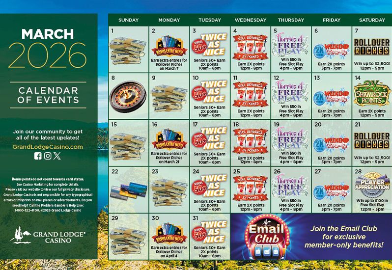 Join us for a Winter Wonderland of Winning at Grand Lodge Casino!