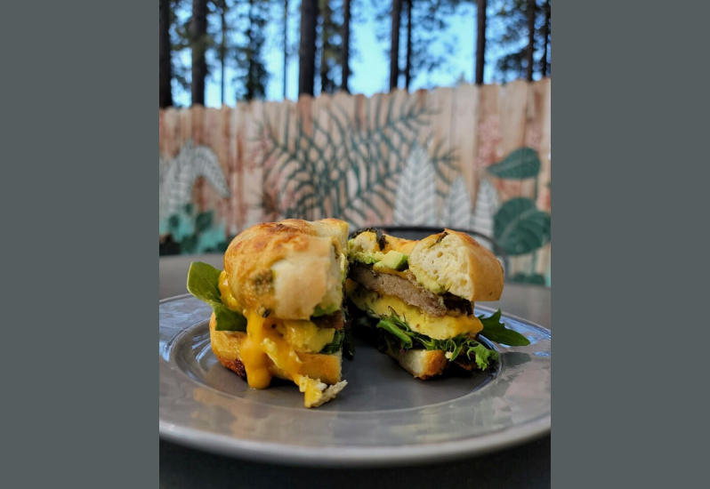 Our cozy cafe is soaking up the summer sunshine through the trees! Come join us for delicious sandos, burritos, coffees and more!