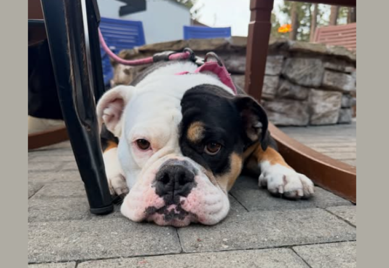 This pup says to join us on the patio for crisp Spring weekend! 🐶🐾