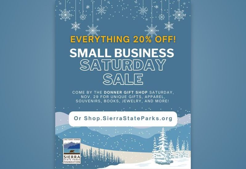 This may be our biggest sale to date. We are offering 20% off on all items storewide and online! Stop by the Donner Memorial State Park Gift Shop in the Visitor Center, or shop online, on Saturday, November 29th, for a huge one-day sale. Find unique gifts, apparel, souvenirs, books, jewelry, and more! By supporting a small business, you're also supporting the local community. And when you're supporting our small business, you're also supporting the California State Parks in the Lake Tahoe - Donner Lake area. Yippee!
