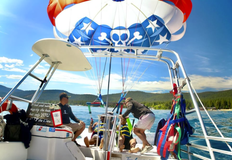 Offering the latest in stay dry Parasailing, with a traditional toe dip. We have flown ages 5 to 85. We use the latest Parasailing equipment, allowing us to fly up to 400 pounds combined weight in doubles or triples. Enjoy approximately 1hr hour long boat ride with 8-10 minutes of air time. Have our USCG licensed captains take you on the best Parasail flights on the Lake. We have flights for all ages and all levels of bravery, with room for up to twelve passengers.
