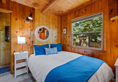Hanna's cabin: This charming vintage west shore cabin has lots of charm and is nicely landscaped. Come stay at this 1 bedroom, 1 bath cabin with loft, that also includes a sunny sitting area. It's close to Chambers Landing, Tahoma Market and Dog & Bear Tavern and has been recently... See More